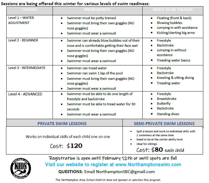 Semi-Private swim lessons can be offered if you would like to split a swim lesson and work on individual skills with 2 swimmers at the same time. Ideal for siblings! Contact us via email to register for a semi-private session at [email protected]